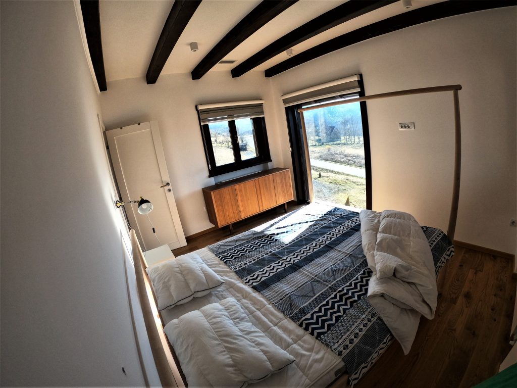 Na spratu se nalaze dve spavaće sobe: jedna soba sa velikim svetlarnikom i pogledom na livadu ispred kuće druga soba orijentisana ka planini i borovoj šumi Obe sobe su svetle i namenjene mirnom odmoru.