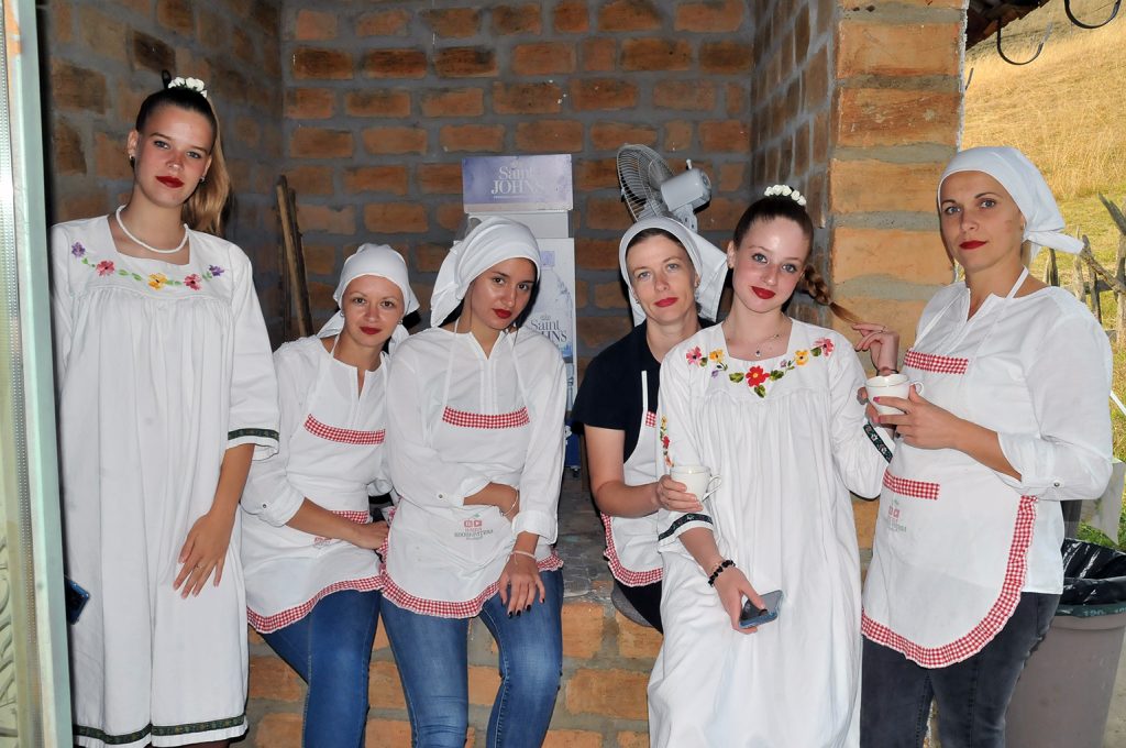 The main wedding participants – the bride, groom, parents, the bride’s brother, and her friends – receive full traditional Serbian costumes.